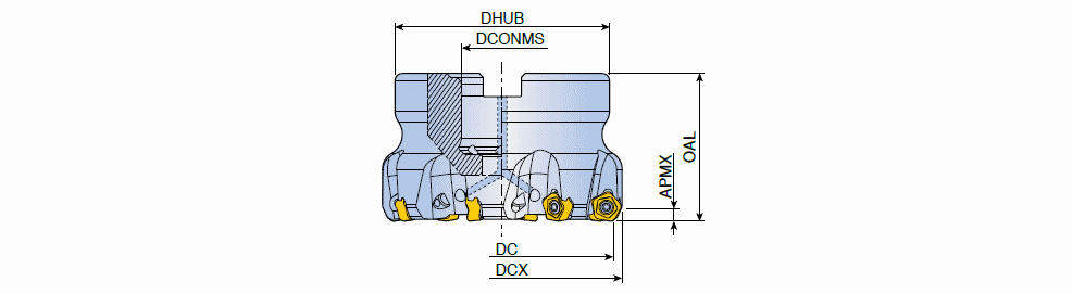 65° Face mills of economical 10 cutting edges inserts with high positive rake angles for general milling in maximum depth of cut ap 3.3 mm