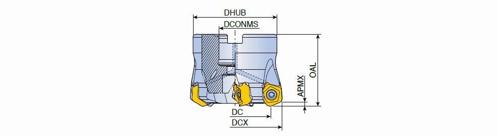 High Feed mills with PTKU 10 inserts of economical 10 cutting edges in maximum depth of cut ap 3.0 mm