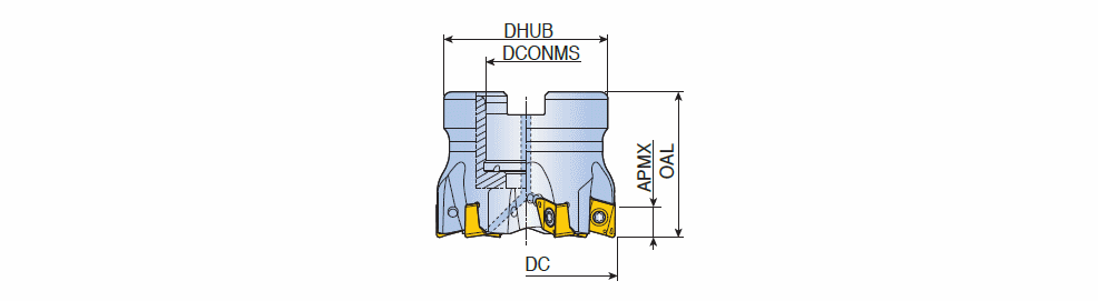 90° Face mills with unique four high positive helical cutting edges of double-sided 4NK(H)T 09 inserts & high ramping capability