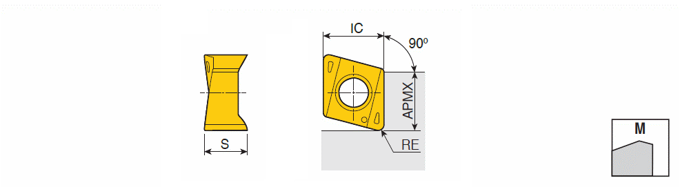 Double-sided inserts with four high positive helical cutting edges & high ramping capacity for 90° shoulders of general machining