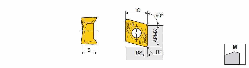 Double-sided inserts with four high positive helical cutting edges & wiper for 90° shoulders & better surface finish of general machining