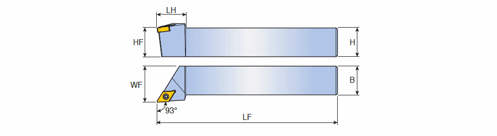 Screw type holders with 93° approach angle and mini size DN.X 0803 negative inserts for small depth of cut machining