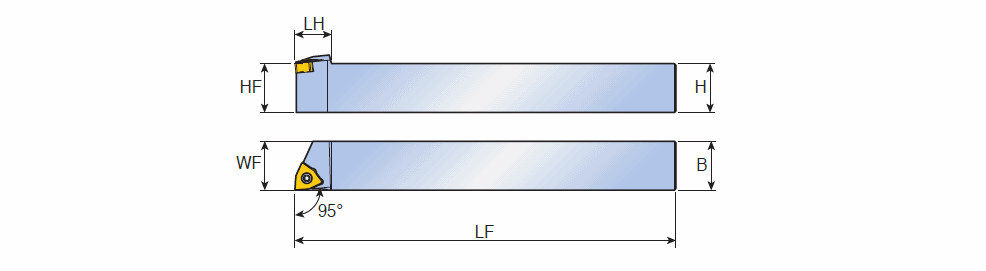 Screw type holders with 95° approach angle and mini size WN.X 0403 negative inserts for Swiss type automatic lathes