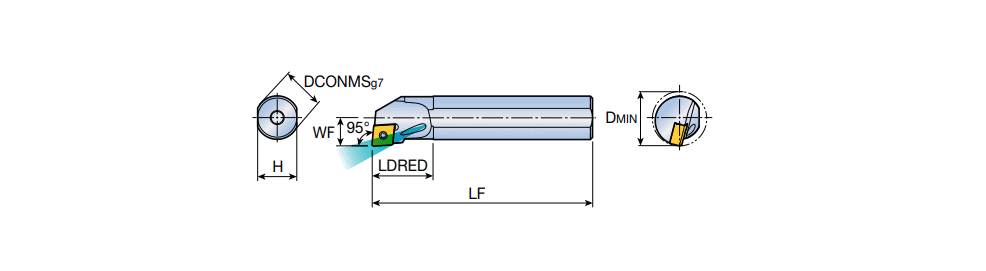 Screw type RHINOMTURN boring bars for mini size CNMX 0703 inserts with internal coolant hole and 95° approach angle