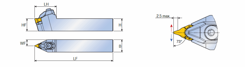 T-holders with unique clamping, 72.5° approach angle and ZNMV Y-BF positive 4 corner inserts