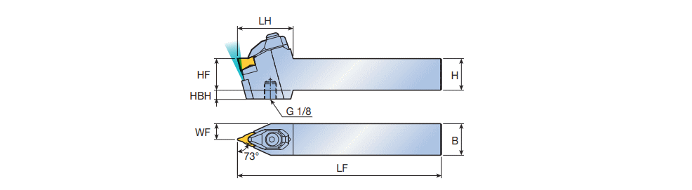 T-holders for high pressure coolant with 72.5° approach angle and ZNMV Y-BF positive 4 corner inserts