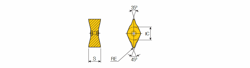 Double-sided positive 4 corner inserts with 35° corner angle for finish cut of all directional & high feed steel turning
