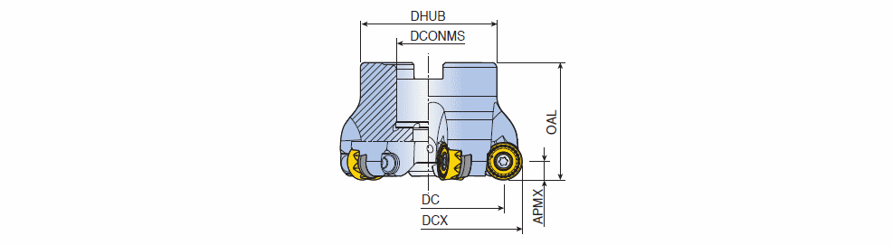 Carbide shim type face mills with strong positive round inserts of RYM(H)X for general profiling & general machining