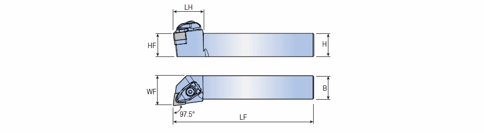 T-holders with 97.5° approach angle for negative 75° rhombic Ceramic without hole inserts