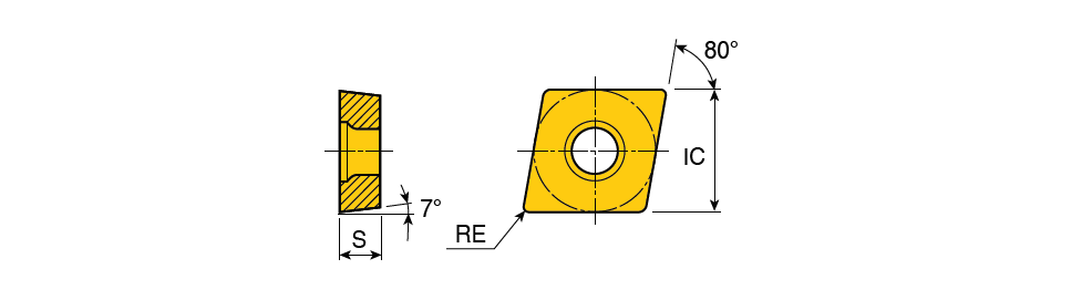 Positive ground 80° rhombic inserts with sharp cutting ed ge for high depth machining of small parts on swiss type automatic lathes