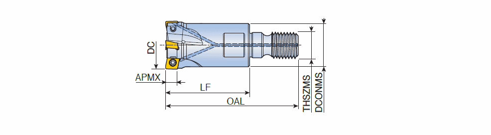 90° Modular end mills with T-FLEXTEC adaptation & high positive helical cutting edges of 2PKT inserts