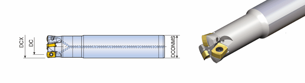 The Kit for trial order contains 1 end-mill and BLMP 4-corner inserts for high feed versatile milling