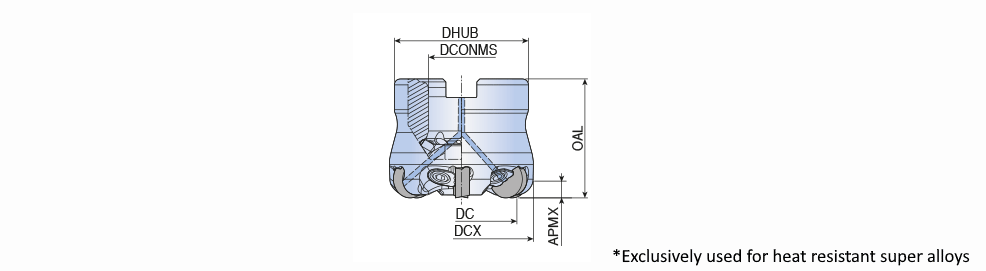 Face mills with positive round RPGN 12 ceramic inserts & wedge clamp with air hole for high speed milling of super alloys with low cutting force