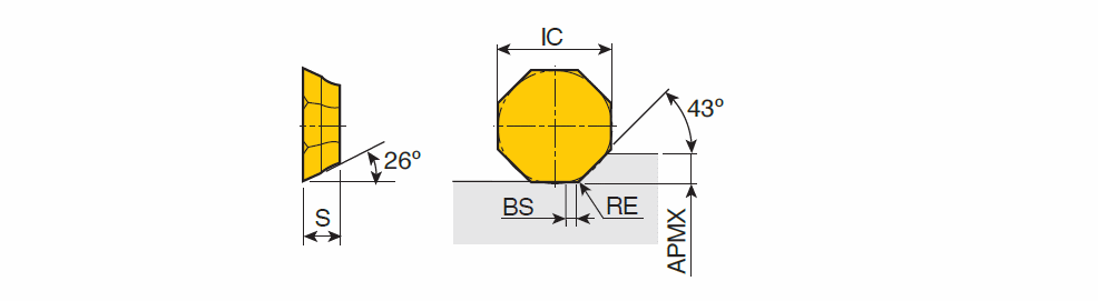 Octagonal super positive milling inserts for stainless steel& low cutting force machining in wedge clamping cutters