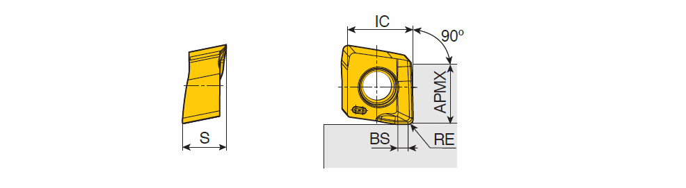 Positive double-sided inserts with two helical cutting edges & strong double-dovetail design for stable machining of 90° shouldering