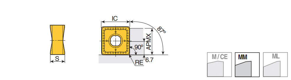 Double-sided ground square inserts with 8 cutting edges and various corner R for 90° and 88° face mills