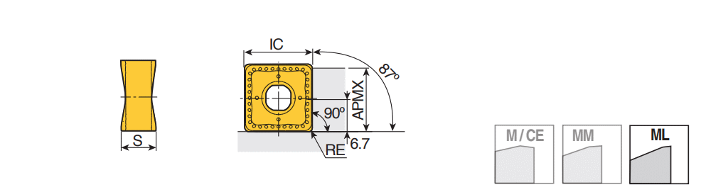 Double-sided ground square inserts with 8 cutting edges and various corner R for 90° and 88° face mills