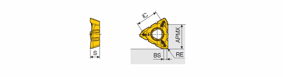 Chip splitter inserts of 3PKT with high positive and three helical cutting edges for 90° shoulders