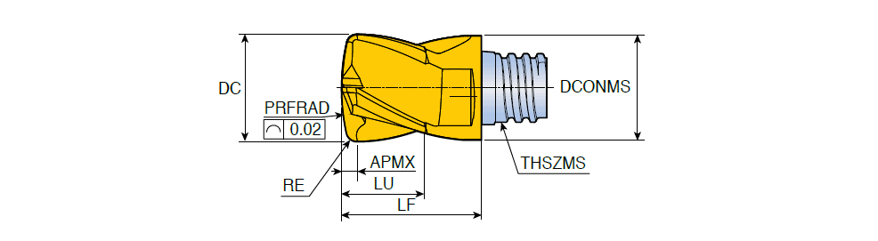 Head changeable solid carbide Lens shape heads with 4 flute for 5-axis profiling with high productivity & better surface finish