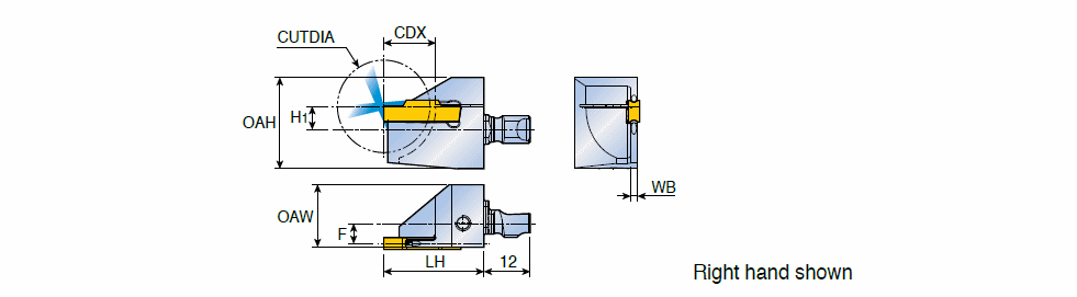Modular head for parting and grooving with high-pressure coolant on Swiss machines