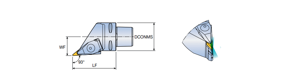 C-ADAPTER T-holders with 2-way high-pressure coolant for 93° approach angle & negative 35° rhombic inserts