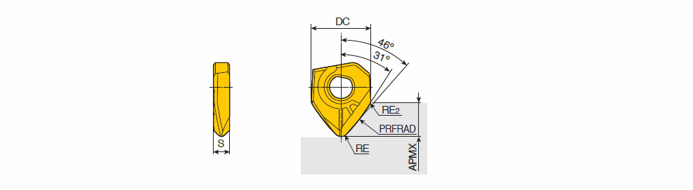 Chamfer barrel type insert with a corner R edge and large cutting edges for high productivity