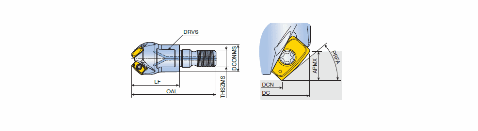 45° modular end mills with T-FLEXTEC adaptation andn economical double-sided BRHU inserts for profiling