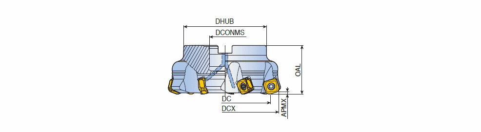 20° Face mills with 8 cutting edges of double-sided Square inserts SQKU 14 for high feed machining