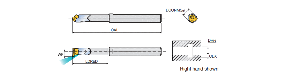 Internal carbide boring bars for shallow grooving with coolant hole on small diameter