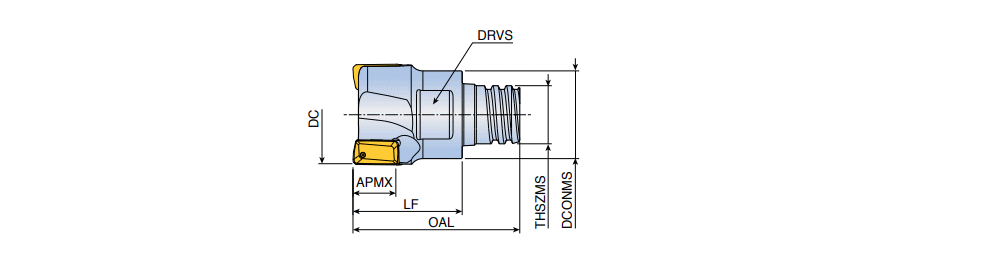 90° modular end mills with MAXI-RUSH adaptation & 4-corners tangential LPHU 05 inserts for small parts machining on swiss machine