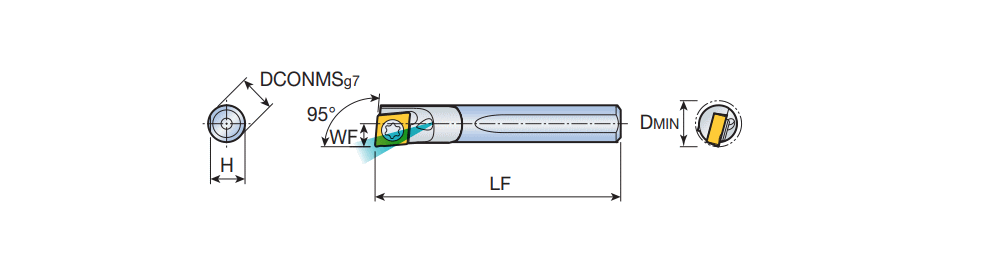 TOPMINI Carbide shank screw type boring bar with positive 80° Rhombic inserts for small components machining and 95° approach angle