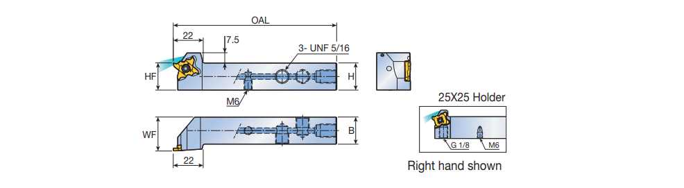 QUAD-RUSH head offset type holders for turning and grooving with high-pressure coolant hole.