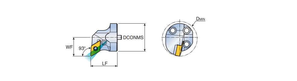 Exchangeable boring heads with negative 55° DN..1506.. inserts & 93° approach angle for anti-vibration deep boring