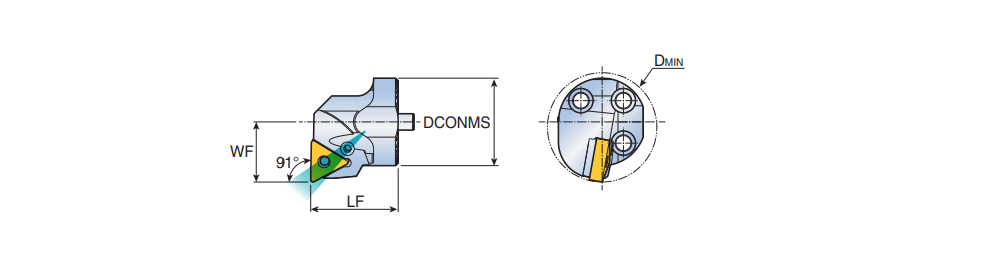 Exchangeable boring heads with triangular inserts & 91° approach angle for anti-vibration deep boring