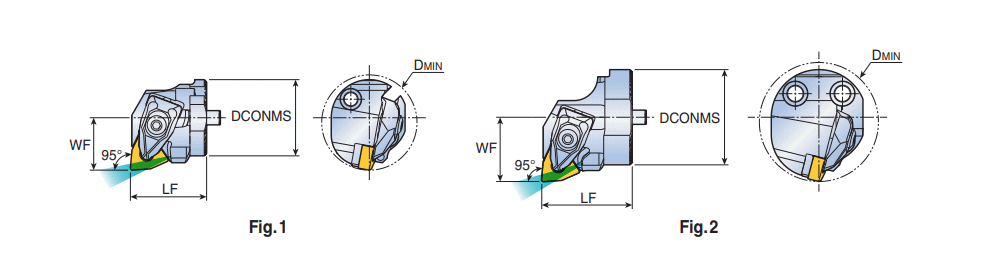 Exchangeable boring heads with negative 80° Trigon inserts & 95° approach angle for anti-vibration deep boring