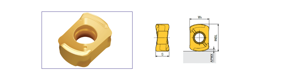 The Kit for mass production contains V-shaped double-sided BLMV inserts for high feed milling