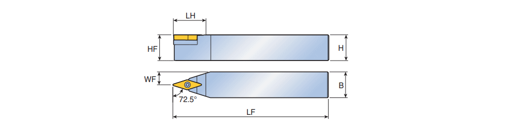 Screw type holder with 72.5° approach angle for positive 35°Rhombic inserts of 5° clearance angle