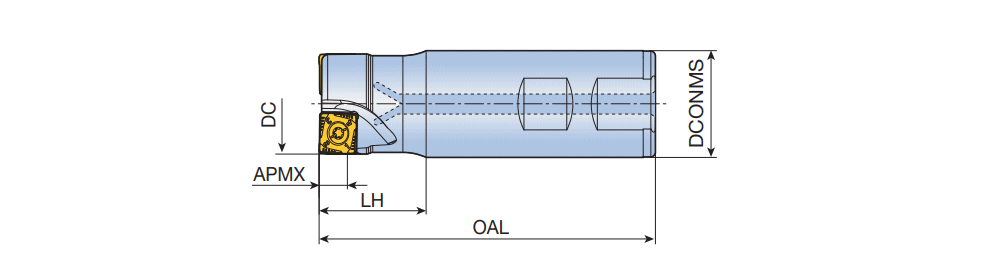 90° End mills with 8 cutting edges of double-sided Square inserts SQK(H)U 12 for general milling