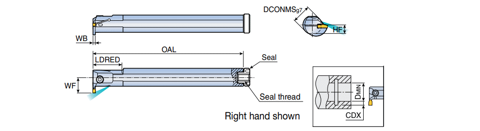 Click More Info to see the insert minimum diameter table for internal grooving.