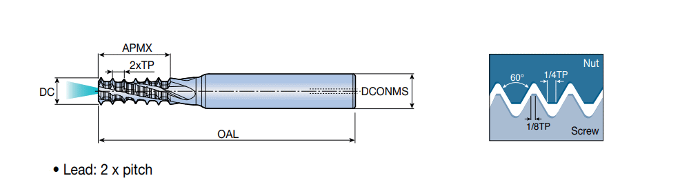 Double lead solid carbide threading end mills for low cutting loads