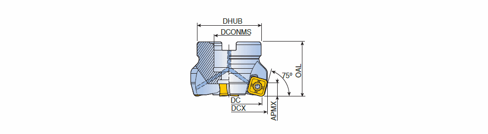 75° Face mills with 8 cutting edges of double-sided square inserts SN 13