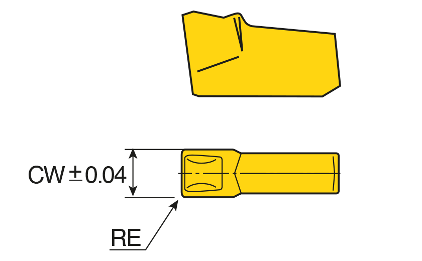 Single ended inserts for parting, grooving & milling with C chip former of medium in hard materials & tough application