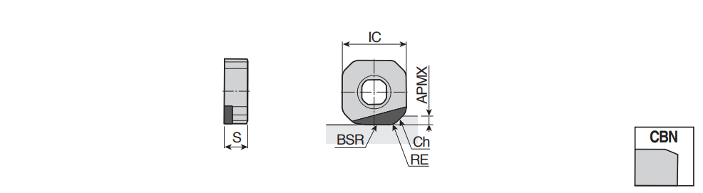 Single CBN tipped & precision ground wiper inserts of SN 12 with corner R for high speed finishing of cast iron