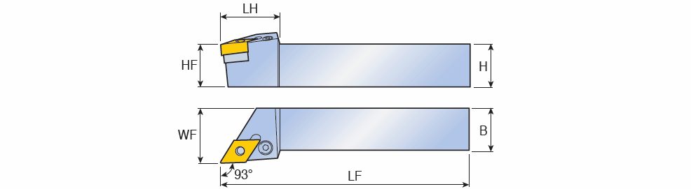 Lever type holder with 93° approach angle for negative 55° Rhombic insert