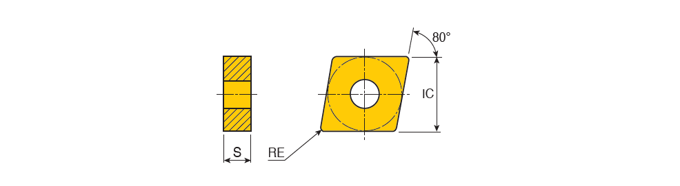 Negative single-sided 80° Rhombic inserts for roughing of steel, stainless steel & cast iron with very strong rake geometry
