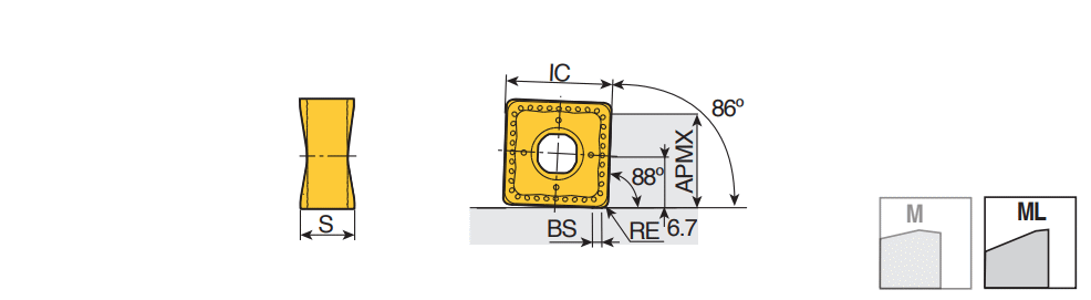 Double-sided square inserts with 8 cutting edges & chamfers and wiper flat for 88° face mills