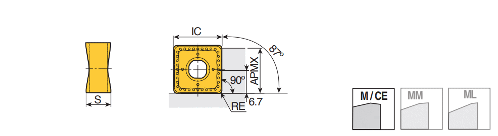 Double-sided ground square inserts with 8 cutting edges and various corner R for 90° and 88° face mills