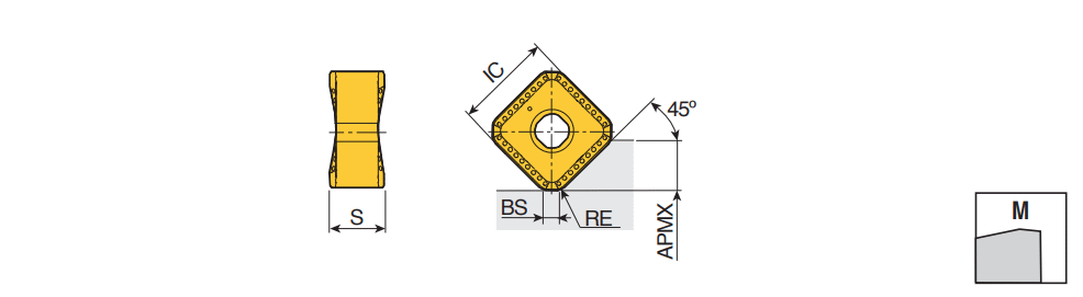 Heavy duty double-sided square inserts with 8 cutting edges for steel and cast iron in 45° face mills