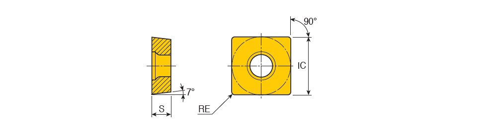 Positive Square inserts for finish to medium light applications of steels & stainless steels with 7° clearance angle & excellent chip control