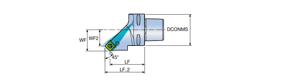 C-ADAPTER Hook lever RHINOTURN with 45° approach angle & SN.. 0904 inserts for longitudinal & face turning